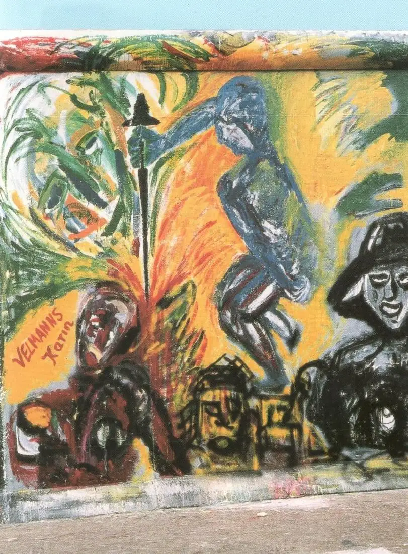 ÄLTERE POSTKARTE BERLINER MAUER THE WALL LE MUR BERLIN KARIN VELLMANNSVerlag: East Side Gallery GDR, Foto: Rita May