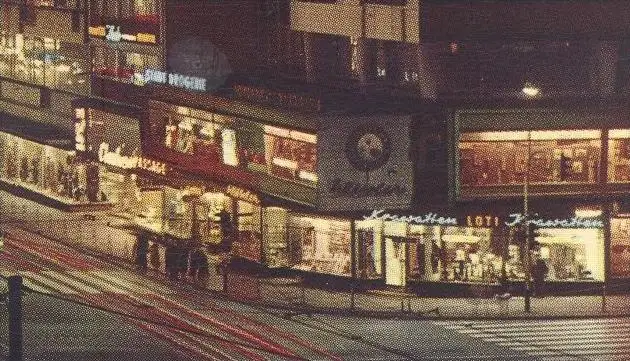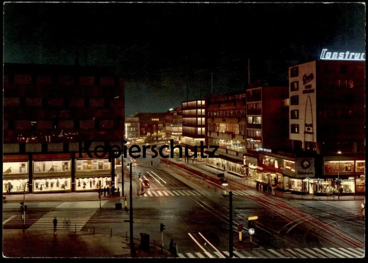 ÄLTERE POSTKARTE BOCHUM CITY BEI NACHT CONSTRUCTA WERBUNG KRAWATTEN