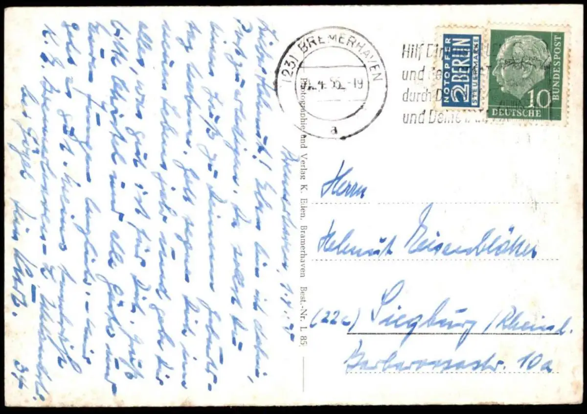 ÄLTERE POSTKARTE BREMERHAVEN COLUMBUSBAHNHOF DAMPFERVerlag: K. Eden, BremerhavenGelaufen: 01.04.1955 mit Stempel Bremerhaven nach SiegburgErhaltung (s. Scan): gut / 915998