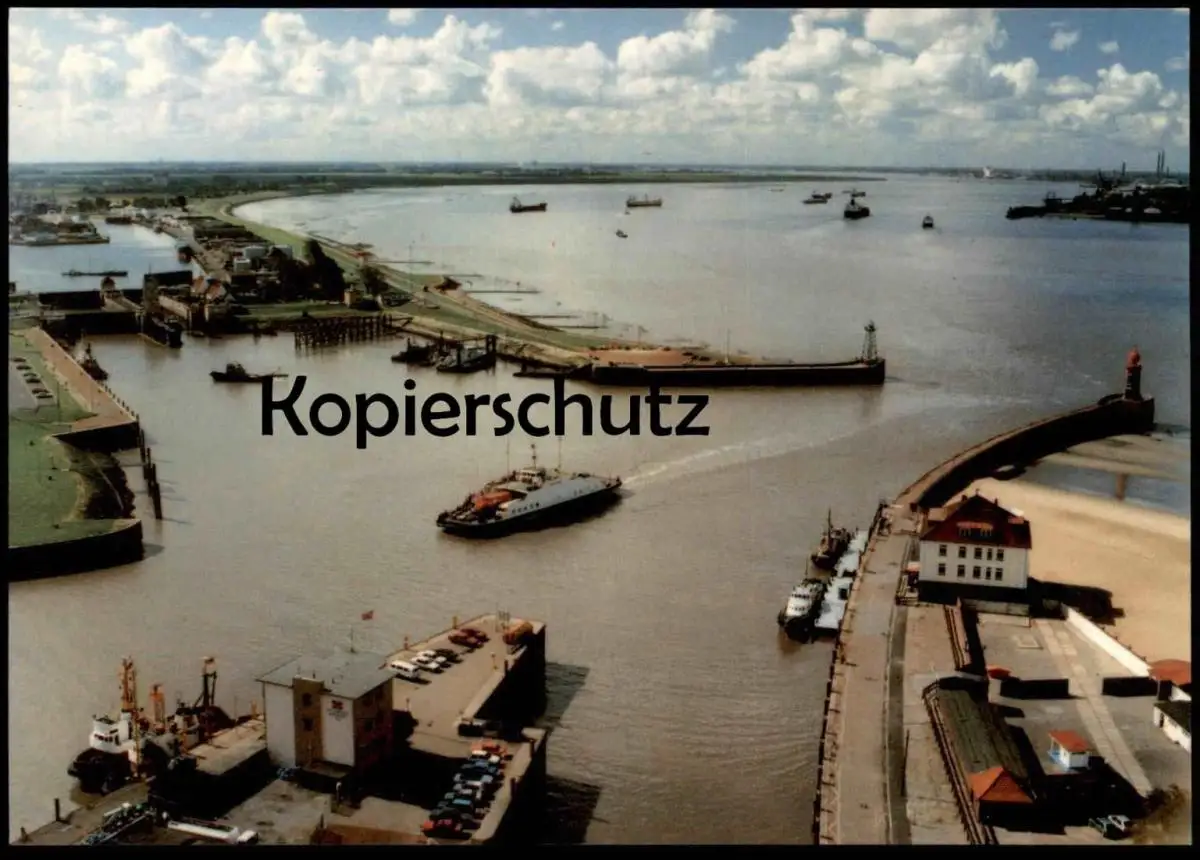 ÄLTERE POSTKARTE BREMERHAVEN GEESTEVORHAFEN BLICK AUF WESER FÄHRE LUFTBILD HAFEN Fliegeraufnahme Panorama Ansichtskarte