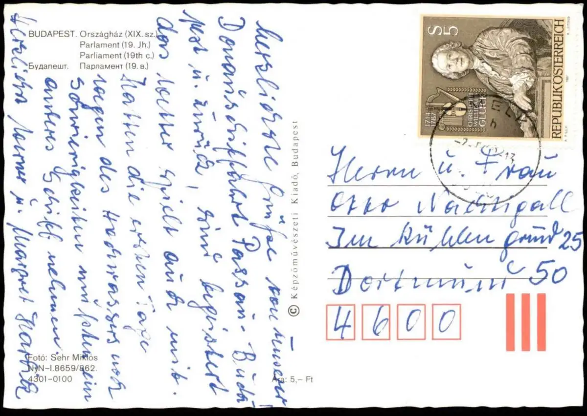 Gelaufen: 02.xx.197x mit Stempel Melk nach Dortmund