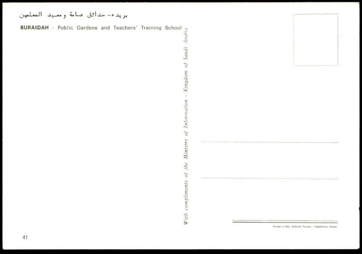 ÄLTERE POSTKARTE BURAIDAH PUBLIC GARDENS AND TEACHERS' TRAINING SCHOOL Saudi Arabia Saudi Arabien postcard cpa AK