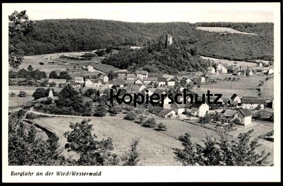 ÄLTERE POSTKARTE BURGLAHR AN DER WIED PANORAMA WESTERWALD ALTENKIRCHEN FLAMMERSFELD