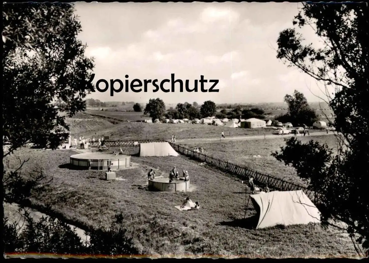 ÄLTERE POSTKARTE CAMPING LÜTKE-UENTROP KREIS BECKUM LIPPBORG LIPPETAL Hamm Soest Zelt tent swimming pool bassin cpa AK