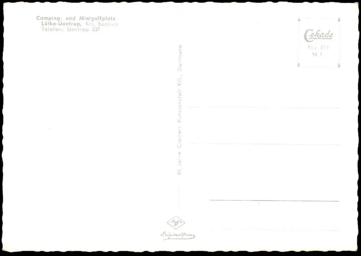 ÄLTERE POSTKARTE CAMPING LÜTKE-UENTROP KREIS BECKUMVerlag: Cramers, Dortmund