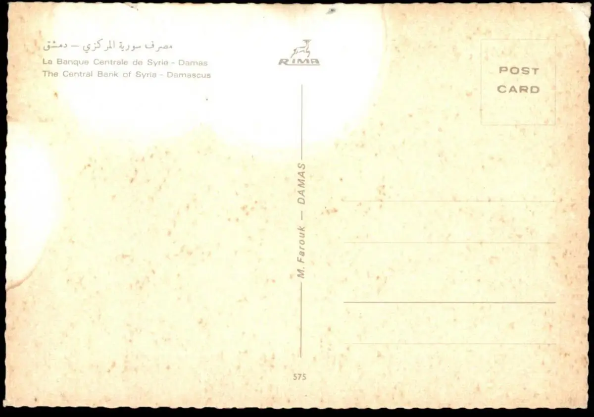 ÄLTERE POSTKARTE DAMAS LA BANQUE CENTRALE DE SYRIEVerlag: M. Farouk, Damas
