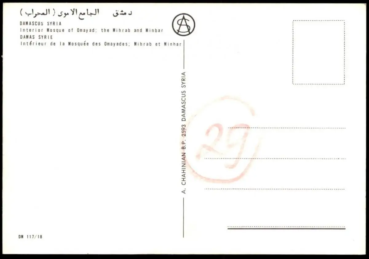 ÄLTERE POSTKARTE DAMASCUS SYRIA INTERIOR MOSQUE OF OMAYAD THE MIHRAB AND MINBARVerlag: A. Chahinian, Damascus Syria