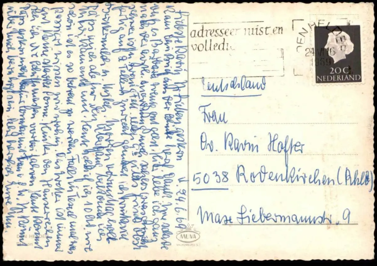 Gelaufen: 24.06.1969 mit Stempel Den Helder nach Köln Rodenkirchen