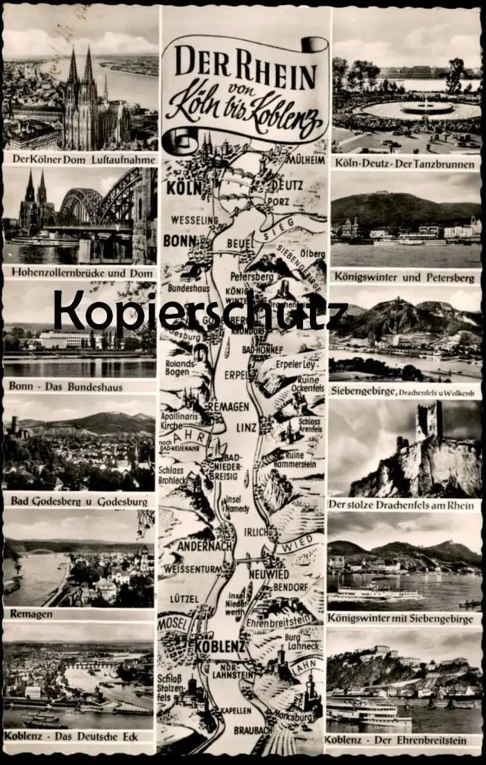 ÄLTERE POSTKARTE DER RHEIN VON KÖLN BIS KOBLENZ Tanzbrunnen Königswinter Bonn Bad Godesberg Remagen Drachenfels
