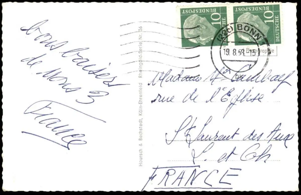 Gelaufen: 19.08.1958 mit Stempel Bonn nach Frankreich