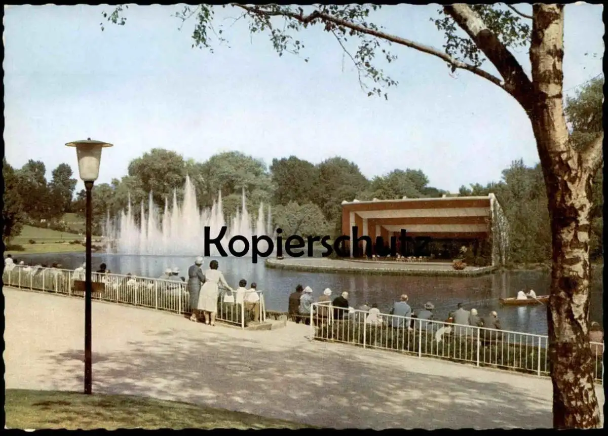 ÄLTERE POSTKARTE DORTMUND BUNDESGARTENSCHAU 1959 GROSSES WASSERKONZERT IM BUSCHMÜHLENTEICH BUGA Park Ansichtskarte