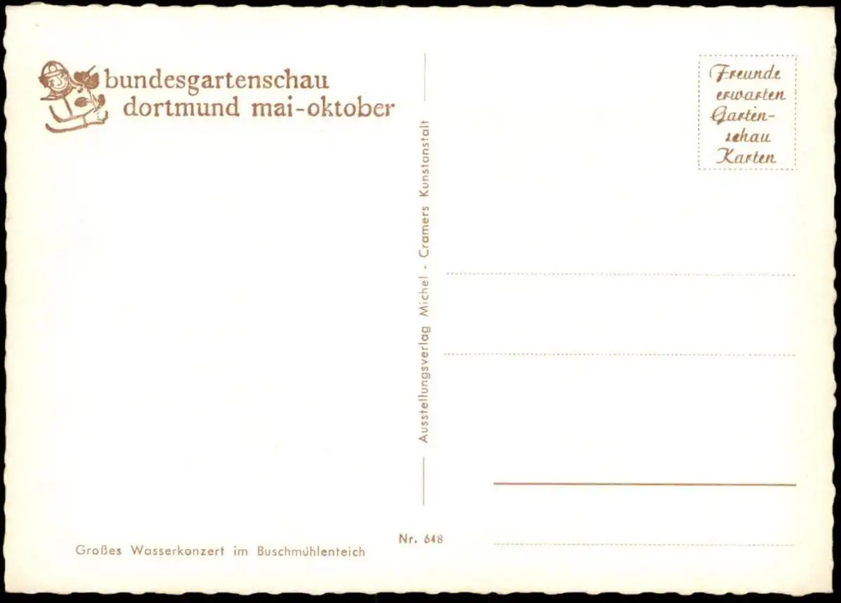 ÄLTERE POSTKARTE DORTMUND BUNDESGARTENSCHAU 1959 GROSSES WASSERKONZERT IM BUSCHMÜHLENTEICHVerlag: Michel, Cramers Kunstanstalt