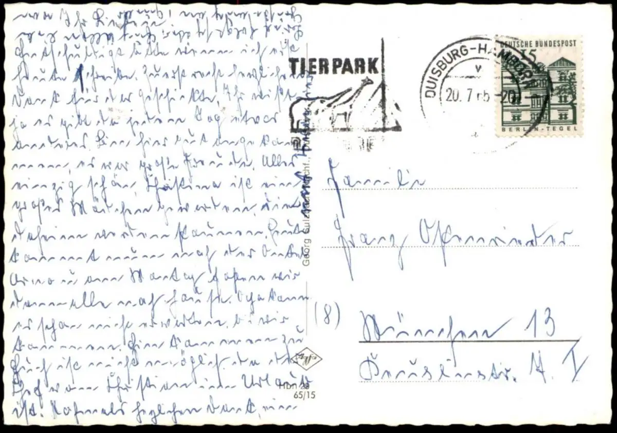 Gelaufen: 20.07.1965 mit Stempel Duisburg-Hamborn nach München