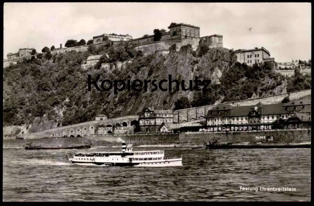 ÄLTERE POSTKARTE FESTUNG EHRENBREITSTEIN KOBLENZ Dampfer steam ship Köln Düsseldorfer ? Frachtschiff Cargo freight ship