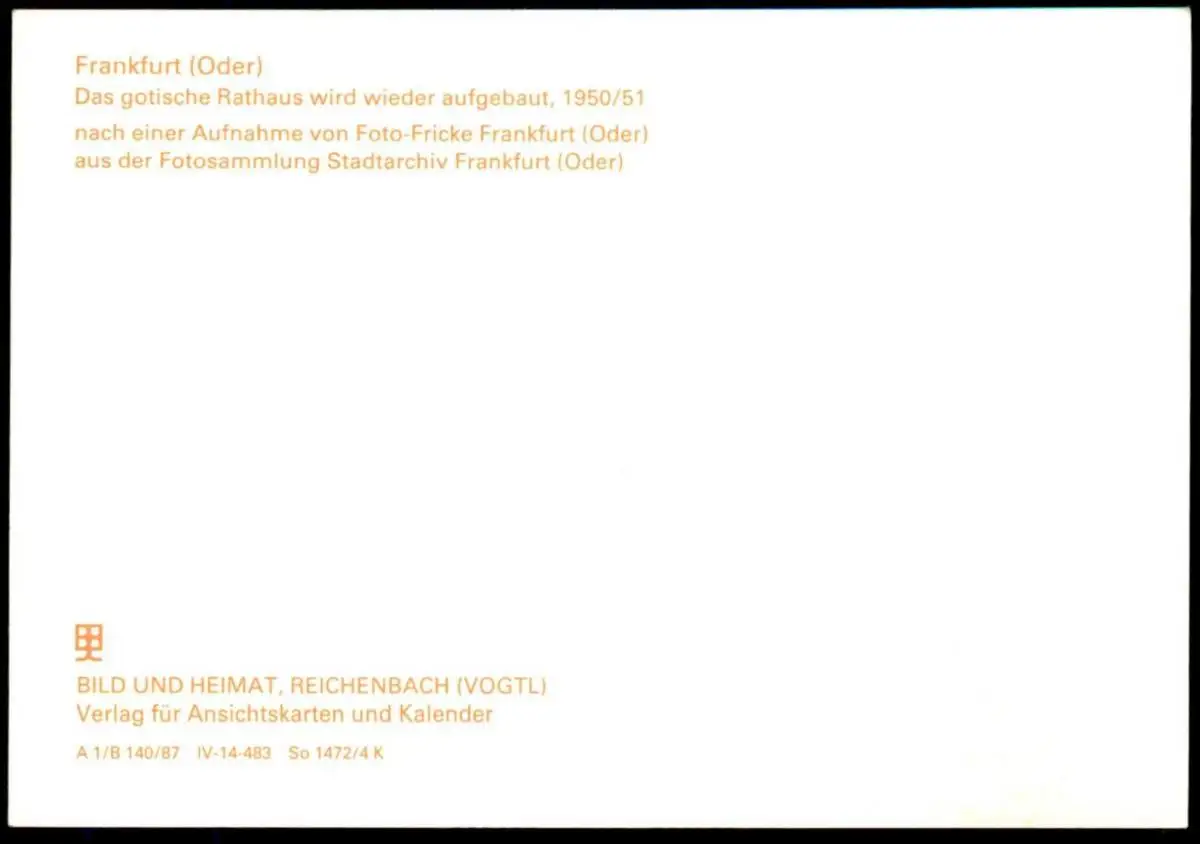 Verlag: Bild und Heimat, Reichenbach; Foto Fricke, Frankfurt Oder, Fotosammlung Stadtarchiv Frankfurt (Oder)