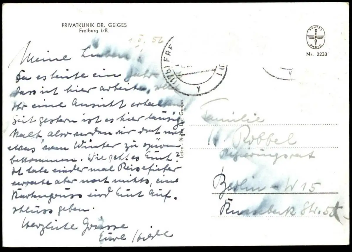 ÄLTERE POSTKARTE FREIBURG IM BREISGAU PRIVATKLINIK DR. GEIGES