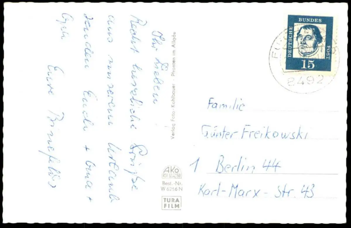 Gelaufen: 25.07.196x mit Stempel Furth nach BerlinErhaltung (s. Scan): gut / 916335