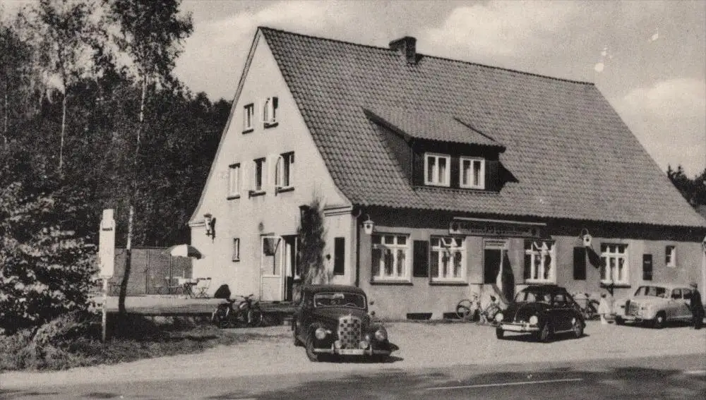 ÄLTERE POSTKARTE GASTHAUS ZUR GRÜNEN TANNE STEINBECK ÜBER BUCHHOLZ VW VOLKSWAGEN KÄFER MERCEDES postcard Ansichtskarte