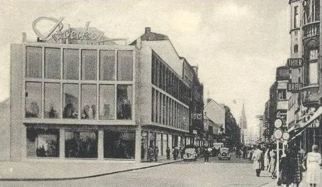 ÄLTERE POSTKARTE GELSENKIRCHEN BAHNHOFSTRASSE HAUPTBAHNHOF HANS-SACHS-HAUS Thier-Bräu Boecker Tram Tramway Post cpa AK