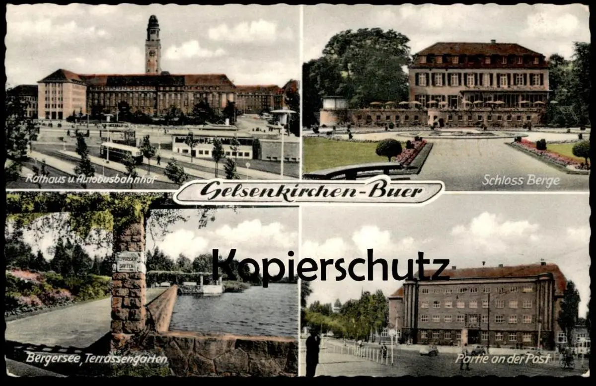 ÄLTERE POSTKARTE GELSENKIRCHEN BUER RATHAUS MIT AUTOBUSBAHNHOF SCHLOSS BERGE BERGERSEE TERRASSENGARTEN PARTIE AN DER POSTVerlag: Cramers, Dortmund