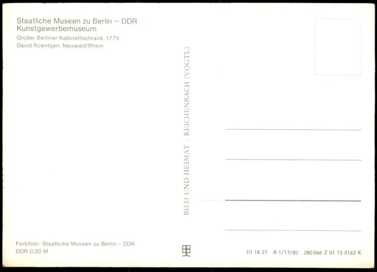 ÄLTERE POSTKARTE GROSSER BERLINER KABINETTSCHRANK 1779 UHR STAATLICHE MUSEEN ZU BERLIN DDR KUNSTGEWERBEMUSEUM DAVID ROENTGEN NEUWIED
