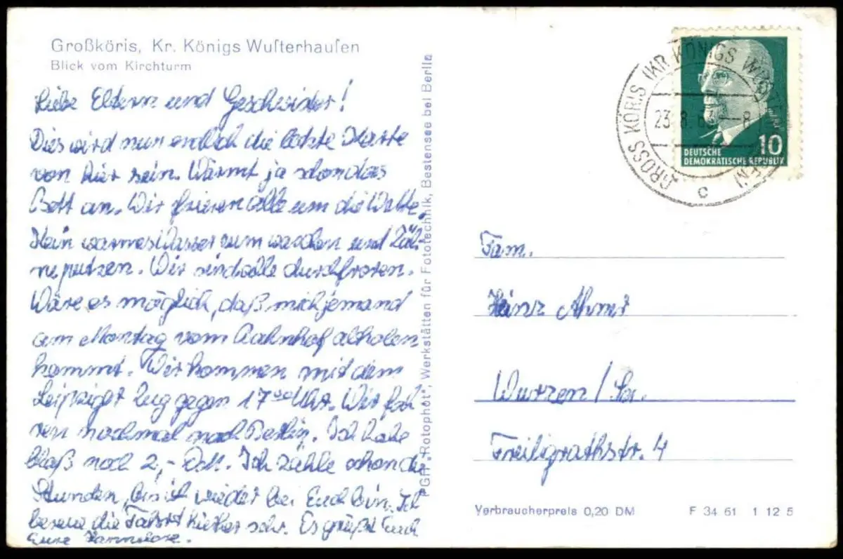 Gelaufen: 23.08.1963 mit Stempel Gross Köris nach Wurzen