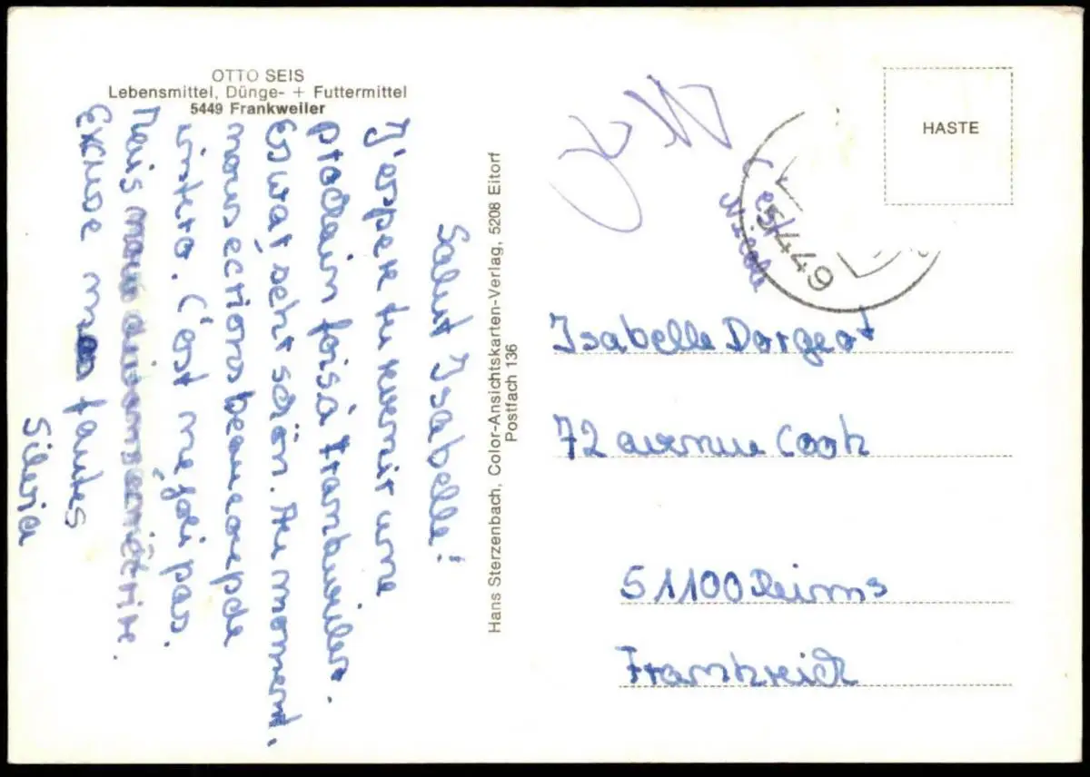 Gelaufen: xx.xx.19xx nach Reims, Briefmarke (sauber) entfernt