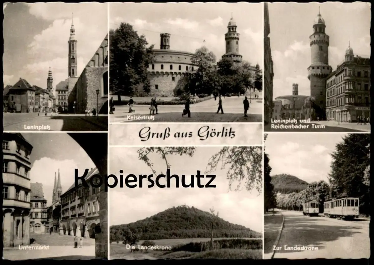 ÄLTERE POSTKARTE GRUSS AUS GÖRLITZ LENINPLATZ UNTERMARKT KAISERTRUTZ DIE LANDESKRONE REICHENBACHER TURM ZUR LANDESKRONEVerlag: Oberlausitzer Kunstverlag Christian Schubert, Ebersbach