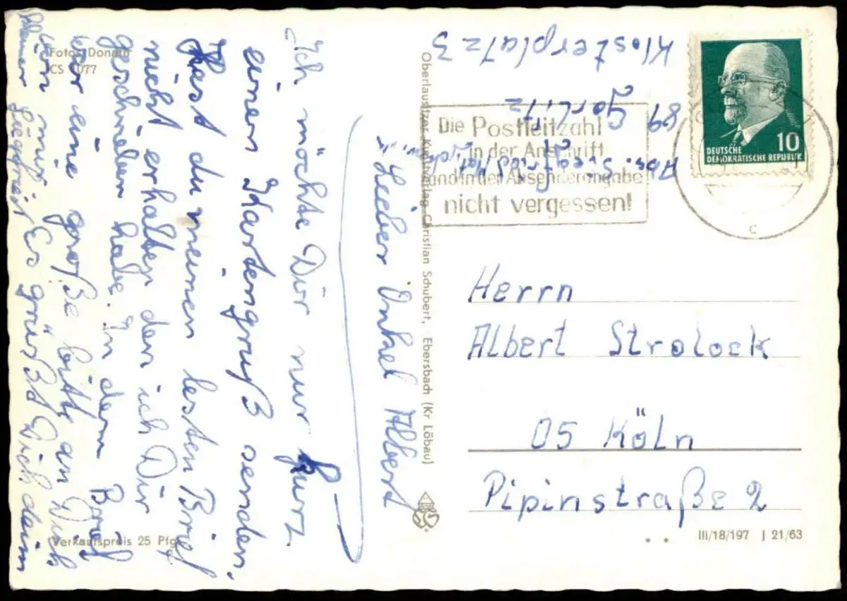 Gelaufen: xx.xx.196x mit Stempel Görlitz nach Köln