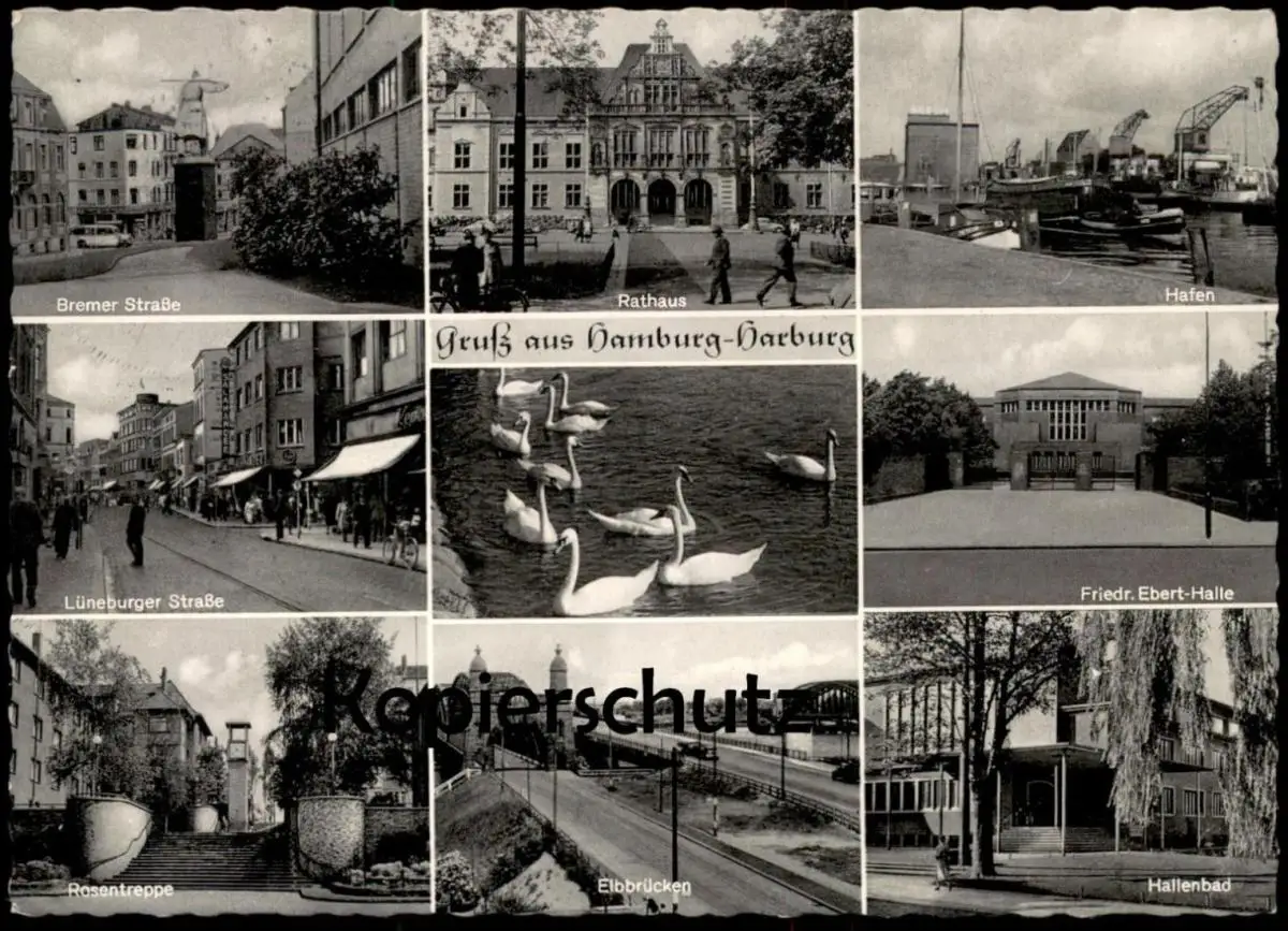 ÄLTERE POSTKARTE GRUSS AUS HAMBURG HARBURG HALLENBAD BREMER STRASSE LÜNEBURGER STRASSE HAFEN ROSENTREPPE Ansichtskarte