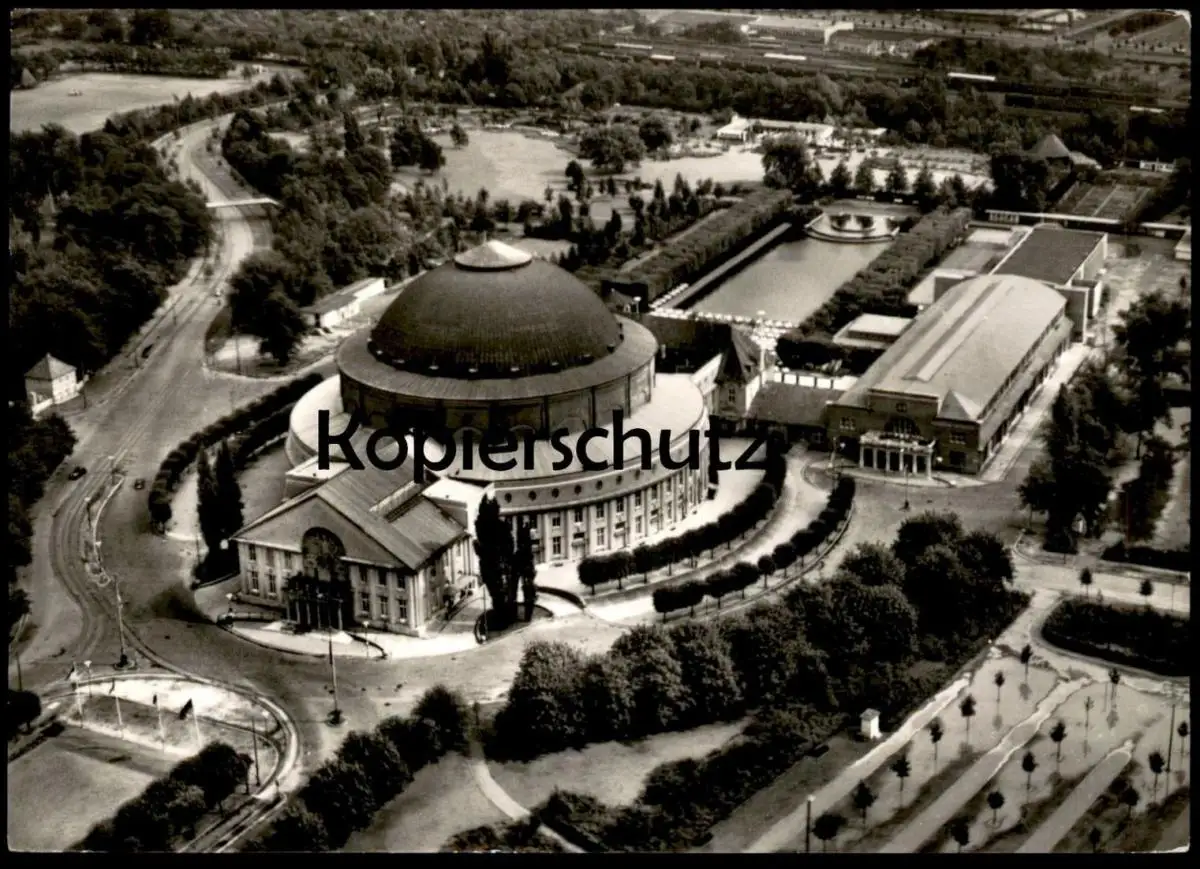 ÄLTERE POSTKARTE HANNOVER STADTHALLE FLIEGERAUFNAHME LUFTBILDVerlag: Schöning & Co., Lübeck, Luftaufnahme Auslieferungslager Hertha Ahlwes, Ilten bei Hannover