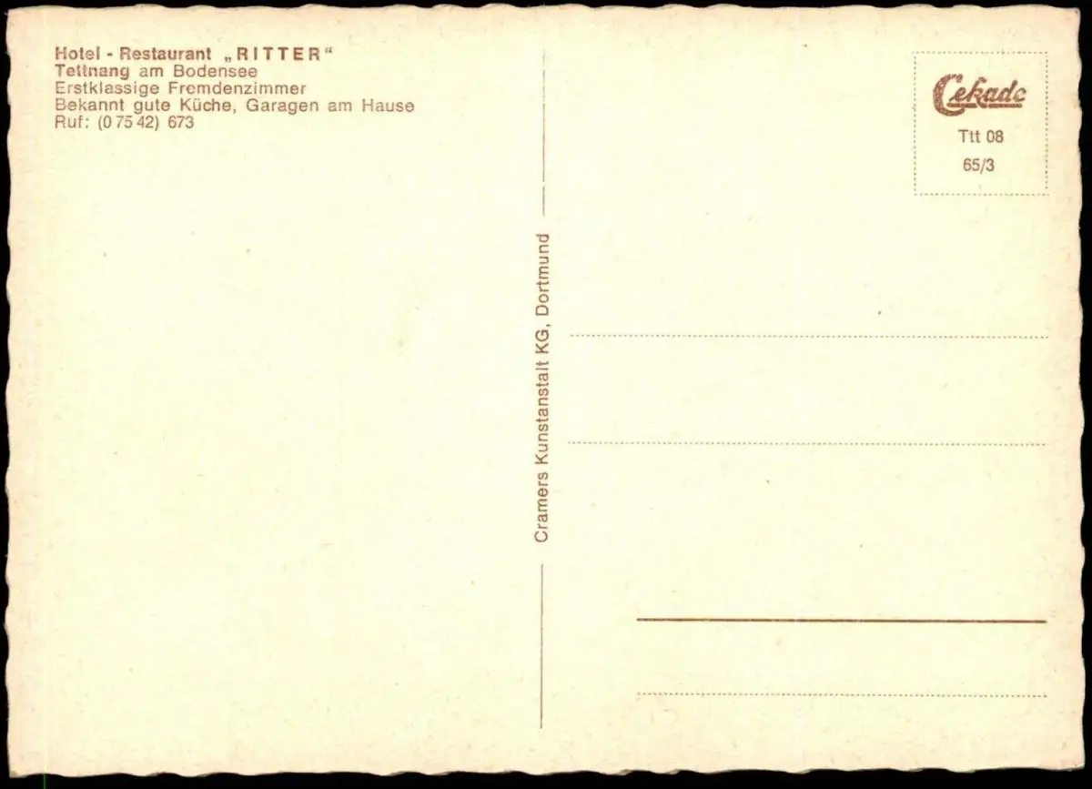 ÄLTERE POSTKARTE HOTEL RESTAURANT RITTER TETTNANG ERSTKLASSIGE FREMDENZIMMER BEKANNT GUTE KÜCHE GARAGEN AM HAUS