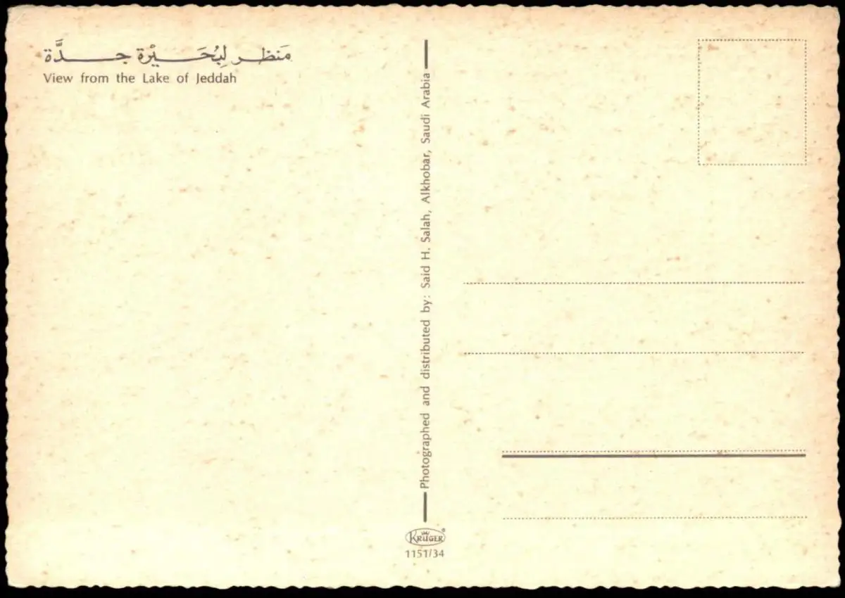 ÄLTERE POSTKARTE JEDDAH VIEW FROM THE LAKE