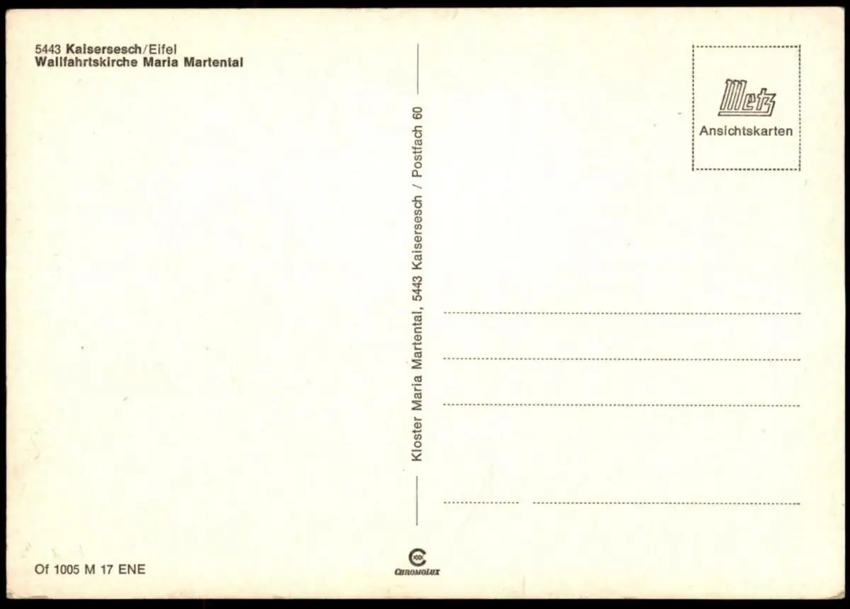 ÄLTERE POSTKARTE KAISERSESCH EIFEL WALLFAHRTSKIRCHE MARIA MARTENTALVerlag: Kloster Maria Martental, Kaisersesch