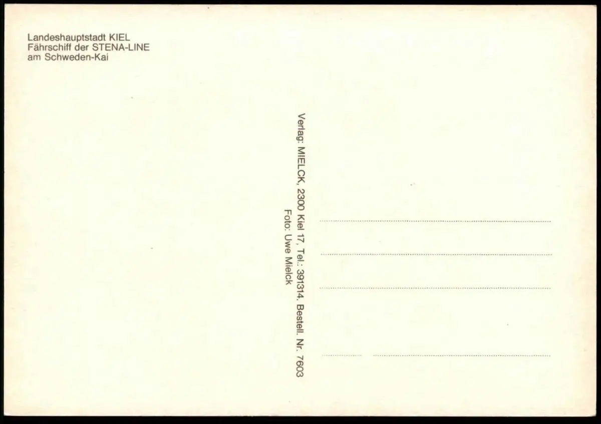 ÄLTERE POSTKARTE KIEL SCHWEDEN-KAI STENA LINE KRONPRINSESSAN VICTORIAVerlag: Mielck, KielGelaufen: neinErhaltung (s. Scan): sehr gut / 916667
