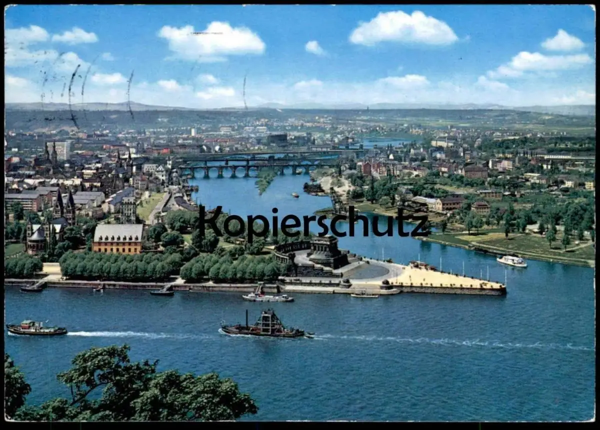 ÄLTERE POSTKARTE KOBLENZ PANORAMA DEUTSCHES ECK Rhein Arbeitsschiff Schiff ship AK Ansichtskarte cpa postcard