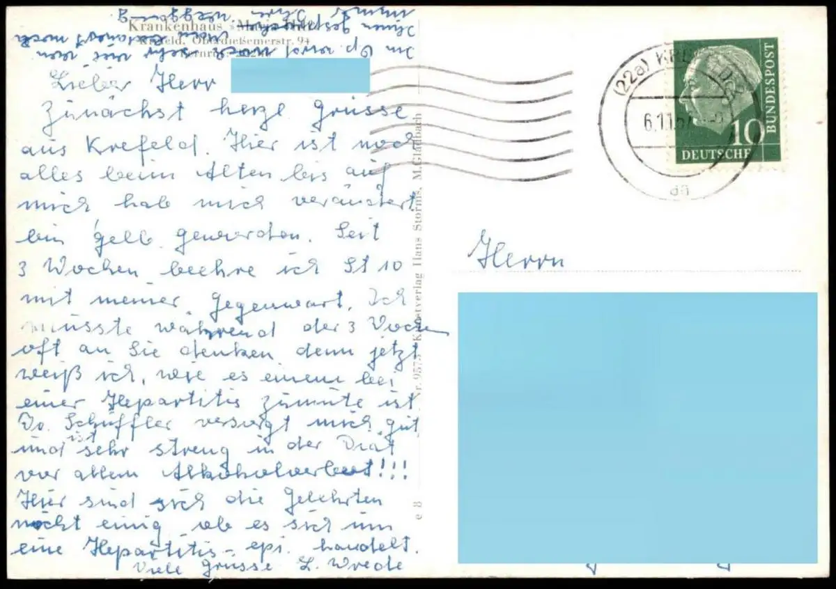 Gelaufen: 06.11.1957 mit Stempel Krefeld