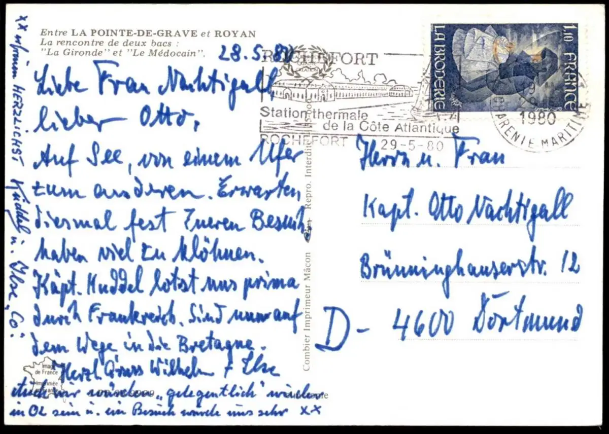 Gelaufen: 28.05.1980 mit Stempel Rochefort nach DortmundErhaltung (s. Scan): gut - mittel, rechte untere Ecke etwas bestoßen / 915352