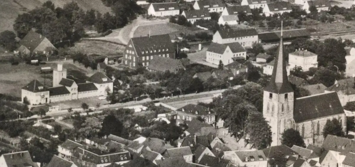 ÄLTERE POSTKARTE LENGERICH WESTFALEN ORIGINAL LUFTFOTO FEUERWEHR-HAUS FLIEGERAUFNAHME LUFTBILD Ansichtskarte AK cpa