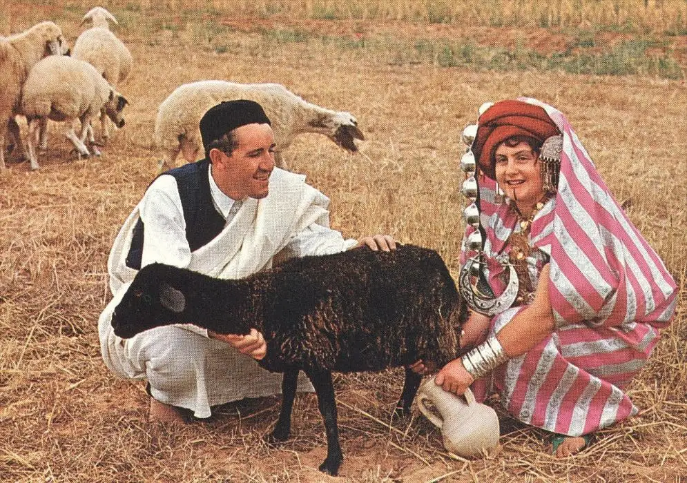 ÄLTERE POSTKARTE LIBYA VEDUTA CAMPESTRE RURAL VIEW VUE CHAMPETRE TRACHT traditional costume folklorique libye sheep cpa
