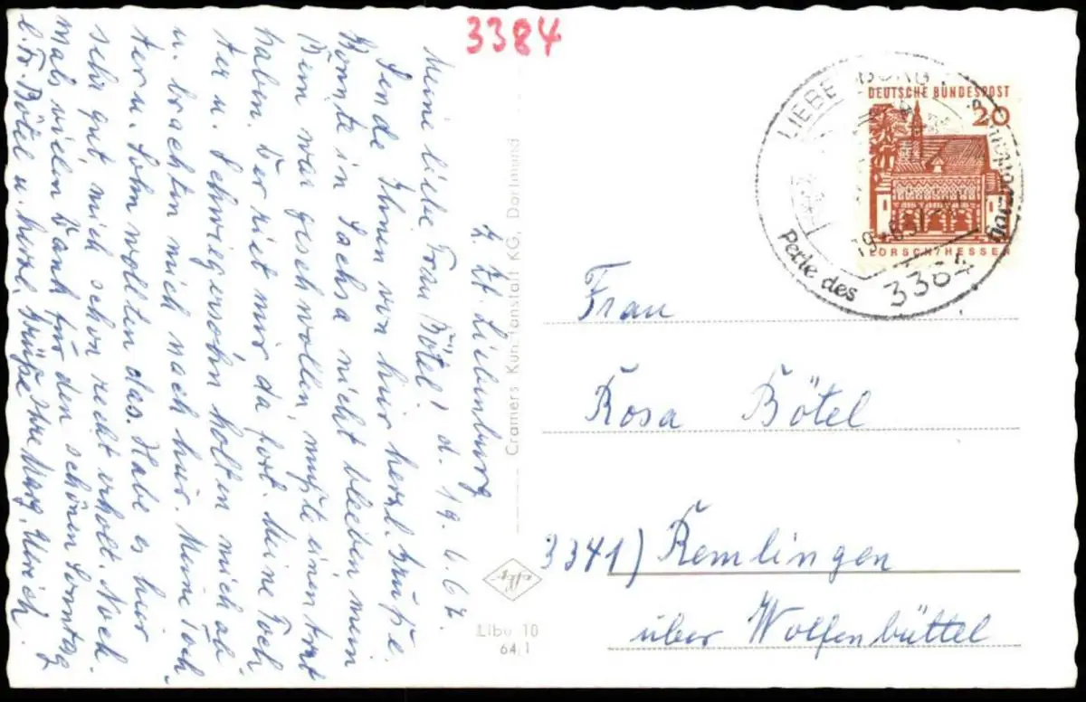 Gelaufen: 19.06.1967 mit Stempel Liebenburg nach Remlingen