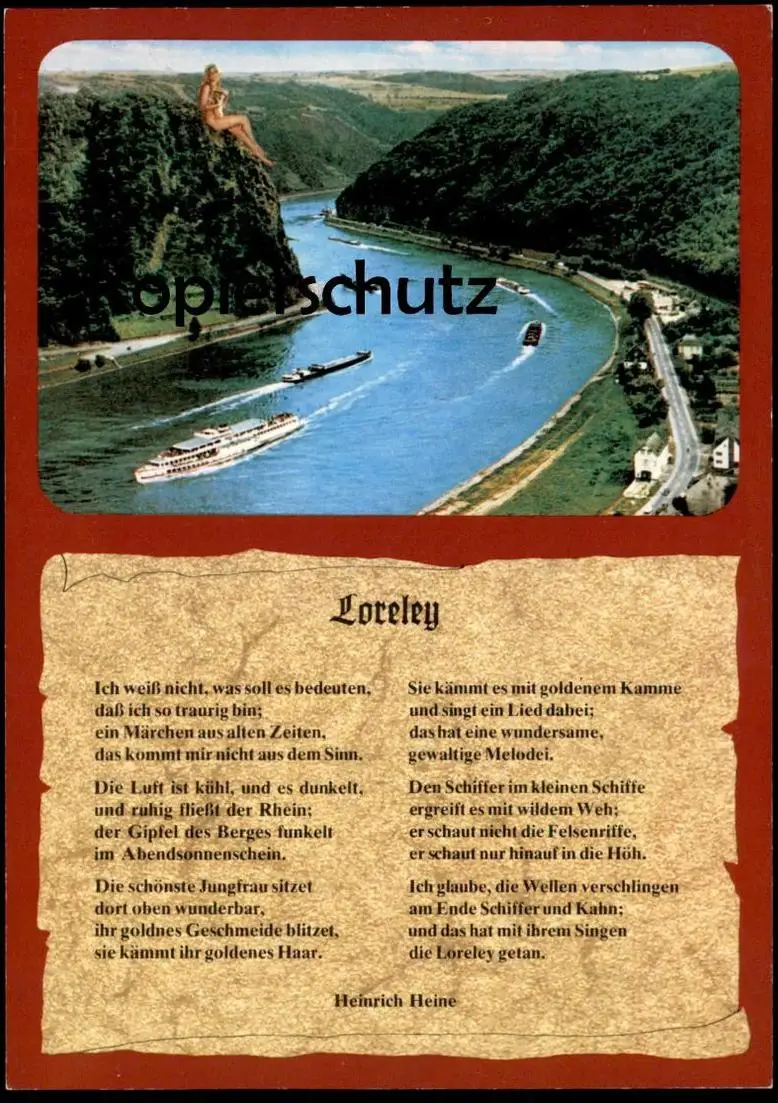 ÄLTERE POSTKARTE LORELEY GEDICHT VON HEINRICH HEINE ICH WEISS... St. Goarshausen Rhein Frachtschiff cargo freight ship