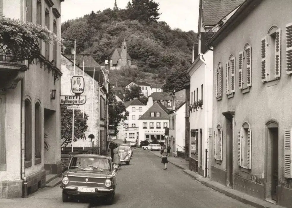 ÄLTERE POSTKARTE LUFT- UND KNEIPPKURORT KYLLBURG EIFEL HOTEL KYLLBURGER HOF SPARKASSE AUTO NSU-PRINZ BITBURGER PILS AK