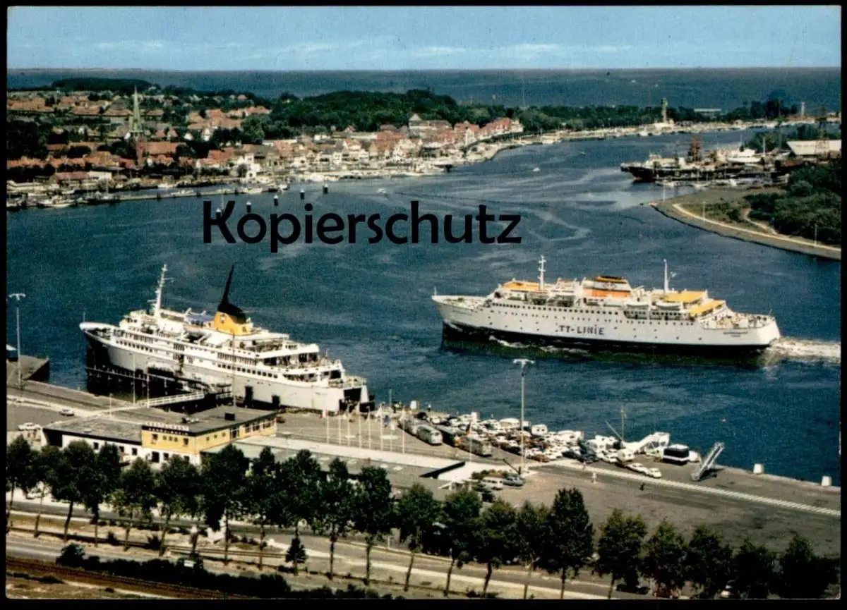 ÄLTERE POSTKARTE LÜBECK-TRAVEMÜNDE SCHIFF TT-LINIE SCHIFFE LUFTAUFNAHMEVerlag: Schöning & Co., Lübeck