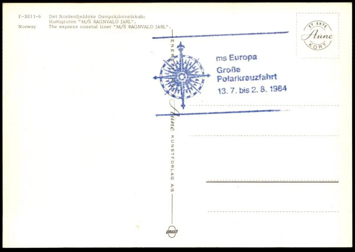 ÄLTERE POSTKARTE M/S MS RAGNVALD JARL EXPRESS LINER HURTIGRUTENVerlag: Aune KunstforlagGelaufen: nein, Stempel ms Europa Große Polarkreuzfahrt 13.07. - 02.08.1984 Erhaltung (s. Scan): gut / 916710