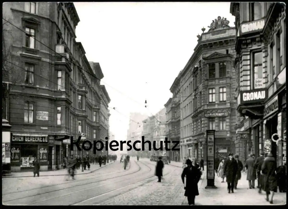 ÄLTERE POSTKARTE MAGDEBURG DIE JACOBSTRASSE GESCHÄFT GRONAU ERICH GERECKE ZAHN-PRAXIS W. HÖPPVerlag: Fotokopie Schultz, Magdeburg