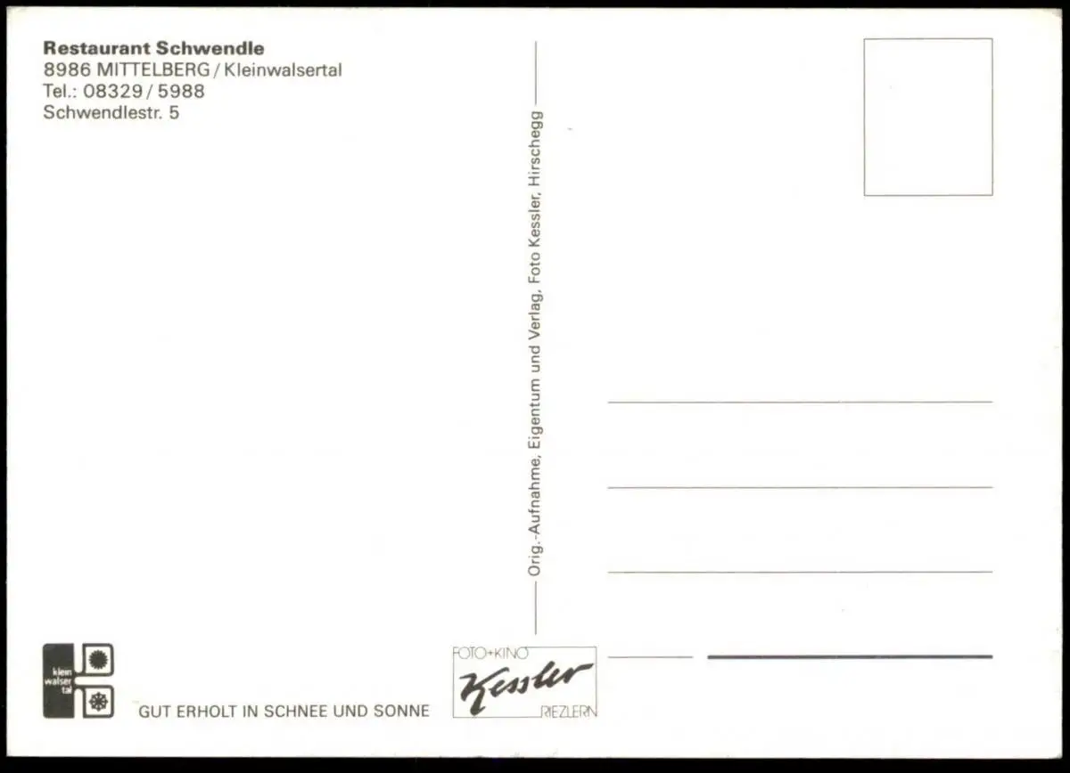 ÄLTERE POSTKARTE MITTELBERG RESTAURANT SCHWENDLE KLEINES WALSERTAL KLEINWALSERTALVerlag: Foto-Kino Kessler, Hirschegg