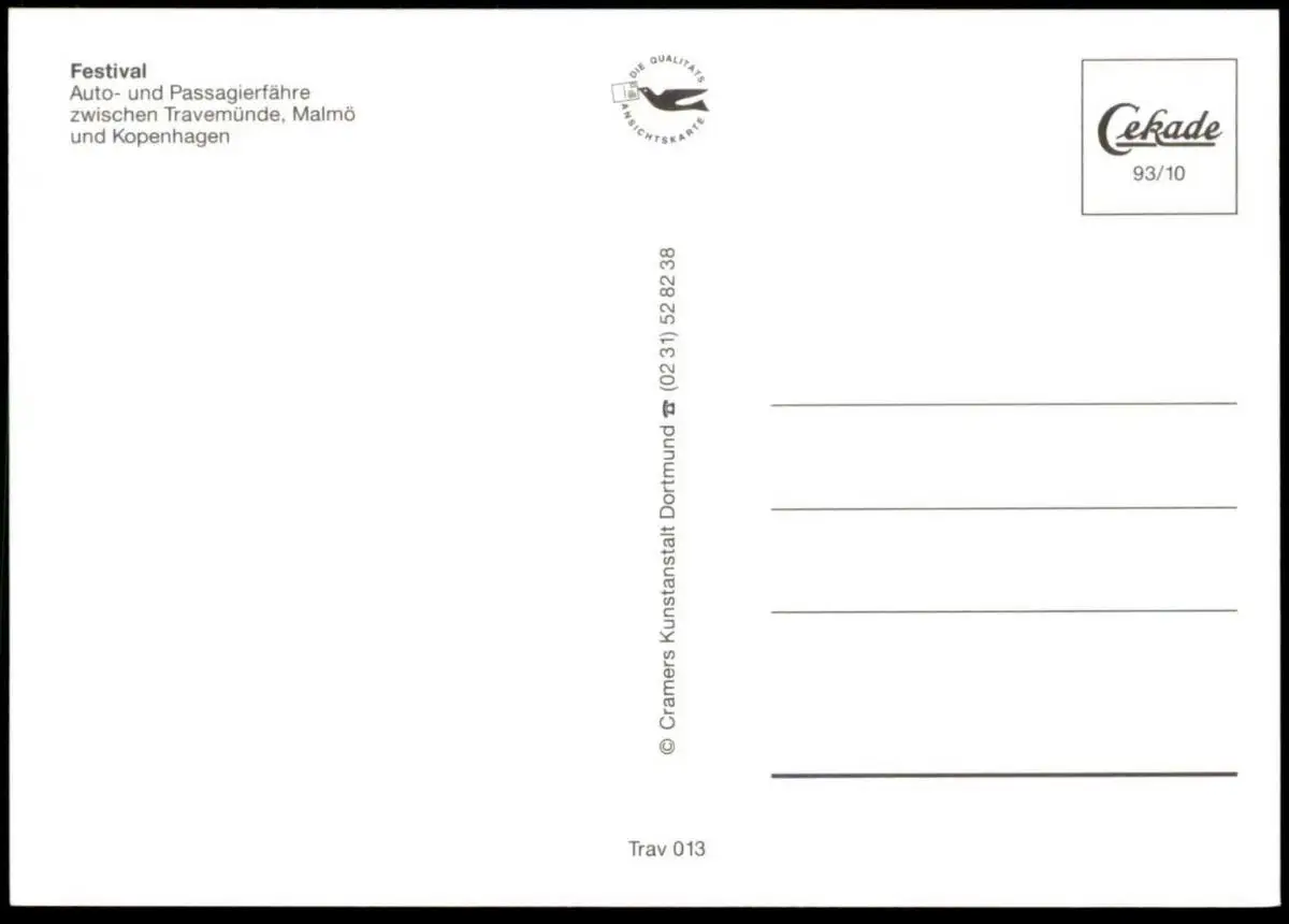 ÄLTERE POSTKARTE MS FESTIVAL SILJA LINE EUROWAY IN TRAVEMÜNDE PASSAGIERFÄHRE UND AUTOFÄHRE ZWISCHEN TRAVEMÜNDE MALMÖ KOPENHAGENVerlag: Cramers, DortmundGelaufen: neinErhaltung (s. Scan): sehr gut / 916706