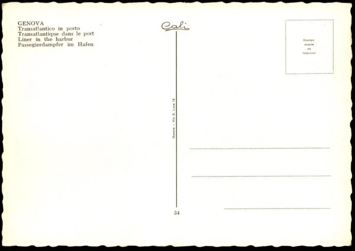 ÄLTERE POSTKARTE MS GENOVA TRANSATLANTICO IN PORTOVerlag: Cali