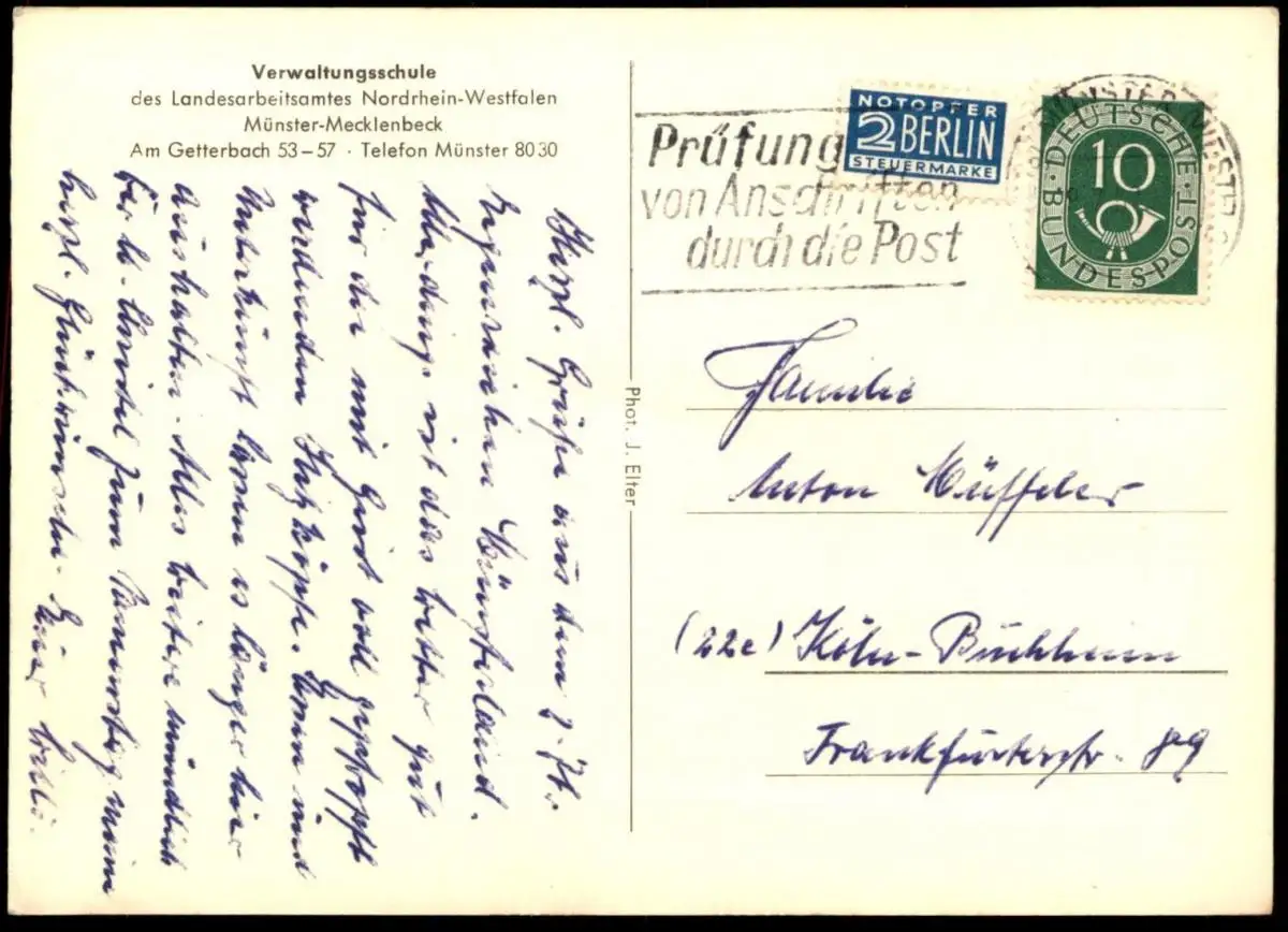 ÄLTERE POSTKARTE MÜNSTER MECKLENBECK VERWALTUNGSSCHULE DES LANDESARBEITSAMTES NRWVerlag: Phot. J. Elter